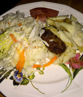 Ужин. Свиная котлета, хлеб. И говяжья сарделька.