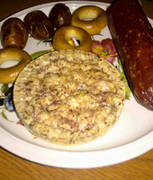 Ужин 2. 5 фиников, не вымоченных в сахарном сиропе, натуральные. Ложка меда и оладушка. Плюс кофе с молоком.