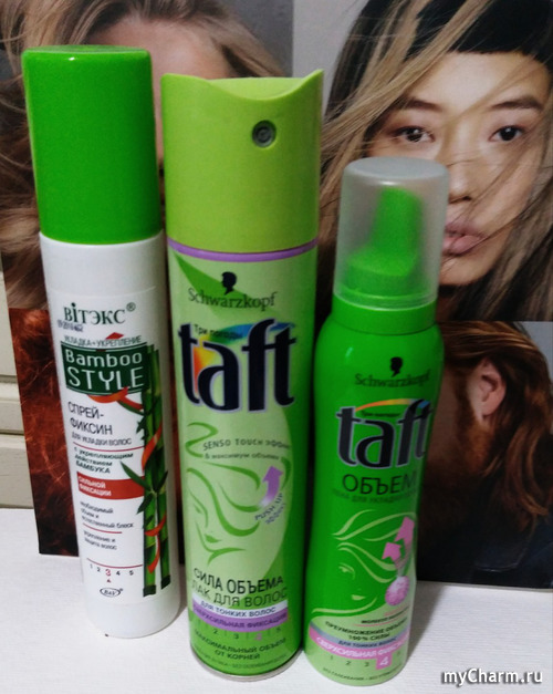 Примерно так же использую пенку для фиксации Taft, только наношу ее сначала на ладони, а потом распределяю по волосам. Пенка не утяжеляет волос, но сохраняет объем. Если мне нужно сохранить прическу, то тогда закрепляю лаком Taft. После того, как попробовала Taft, другие не покупаю, так как результат меня вполне устраивает.