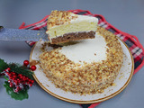 Готовые бисквиты остужаем и срезаем верхушку, так же я подрезаю края. Начинаем собирать торт. Сначала темный корж, затем крем, затем белый корж, затем крем. В конце обильно смажьте торт сверху и по бокам кремом. Остатки от бисквита измельчите блендером и посыпьте торт со всех сторон. Также можно украсить по своему желанию. Поставьте в холодильник на 1-2 часа.