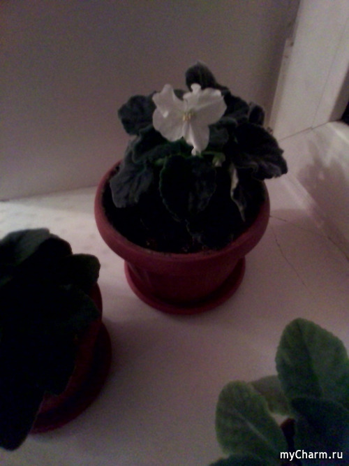 Мои фиалки тоже пытаются цвести.И одна орхидея раскрыла цветок--- бордовая каттлея.