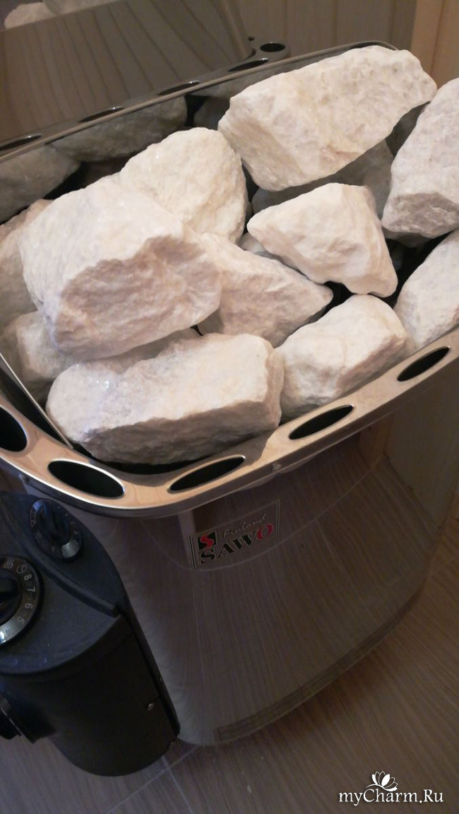 В итоге мы теперь можем принимать душ когда нам захочется. Раньше у нас не было такой возможности. Так же можем попариться не выходя из дома. Это просто здорово! Для сауны мы купили специальные камни, они очень красивые, а судя по буклету, ещё и полезные.