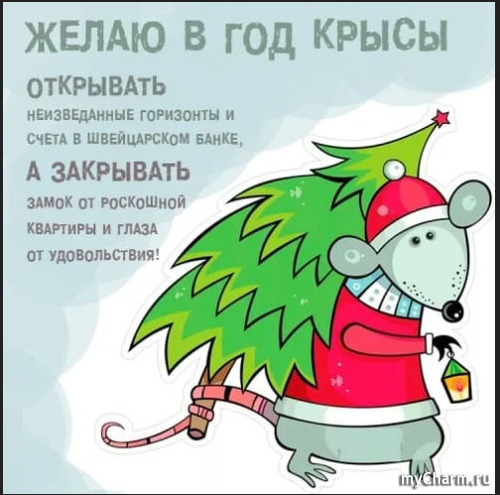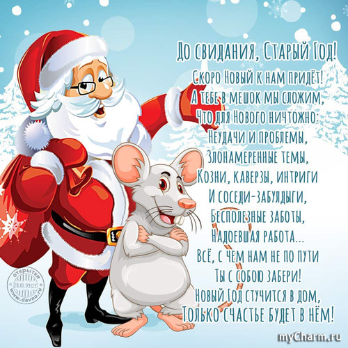 Провожаем Свинку в путь, Про нее ты позабудь, Приготовь скорей сырок, Вступит Крыса на порог! Пусть зубастый и хвостатый Символ года вас хранит, Исключит пусть все тревоги И избавит от обид. Пусть финансы вам приносит, Бережет семейный мир, Принесет успех желанный И здоровьем наградит! Год необычный на пороге, Уже идет, давно в дороге... Читать полностью |