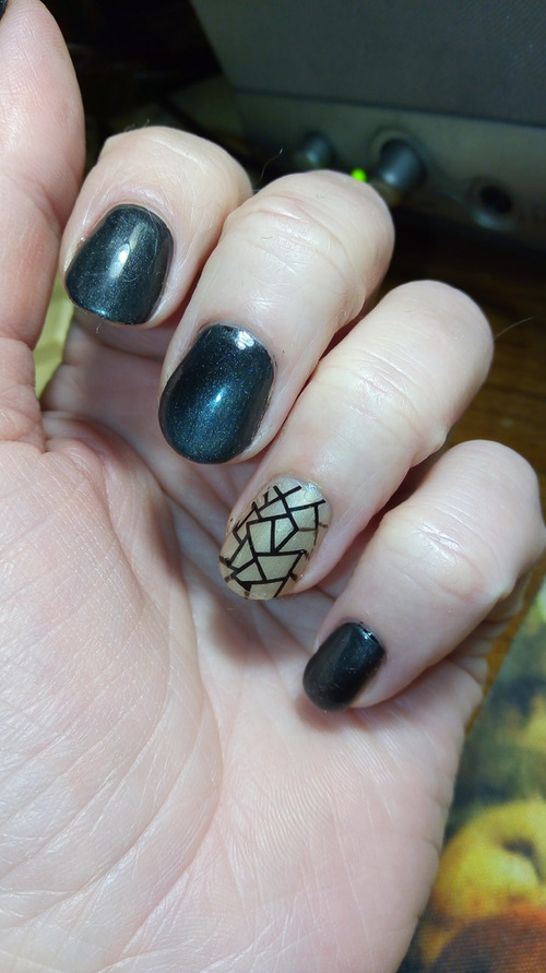 2925 от рунейл. с эффектом "кошачий глаз". Вроде даже с магнитом обращаться получилось в этот раз, но цвет лака настолько темный, что и не видно ничего