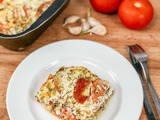 Когда кабачки подрумянятся солим и по желанию перчим. Все перемешиваем и выкладываем в смазанную маслом форму.