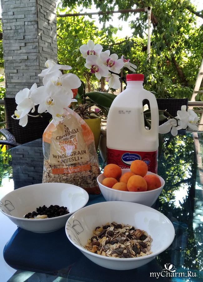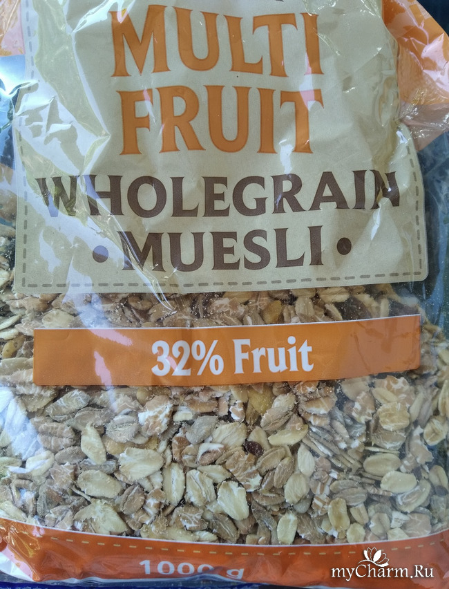 Поэтому я беру 3-4 столовых ложек мюсли и заливаю 3% цельным молоком или кефиром.