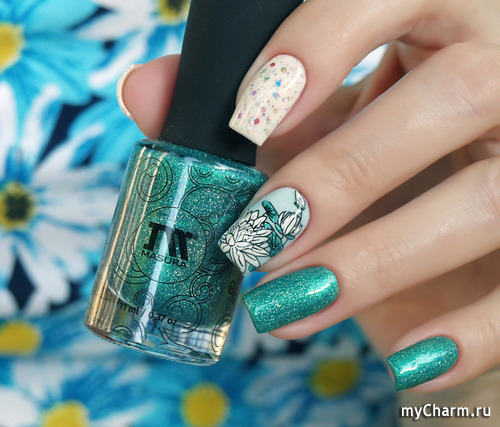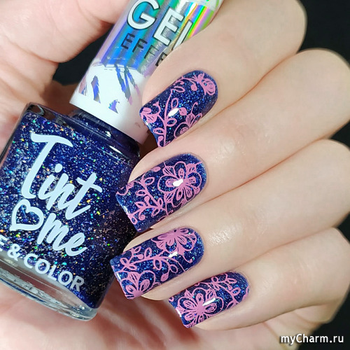 У меня лак, подаренный мне Наташей Тигрией и цветуЁчный стемпинг в розовых тонах.