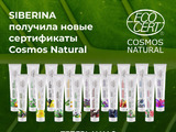 myCharm.Ru → SIBERINA получила новые сертификаты Cosmos Natural
