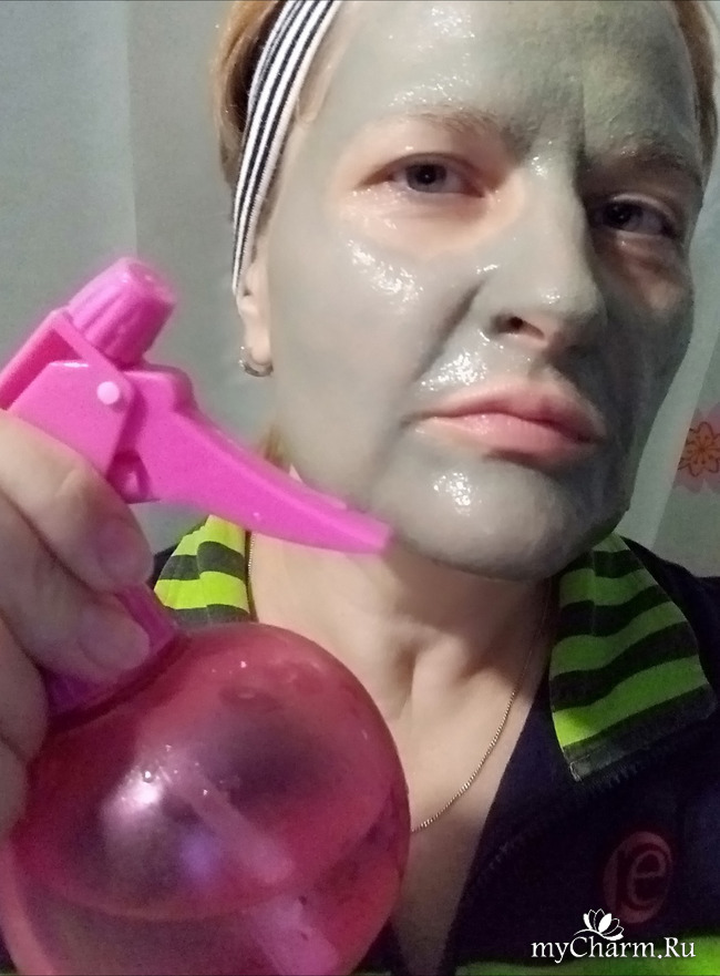как только маска начинает подсыхать и тянуть кожу, немного сбрызгиваю её водой...
