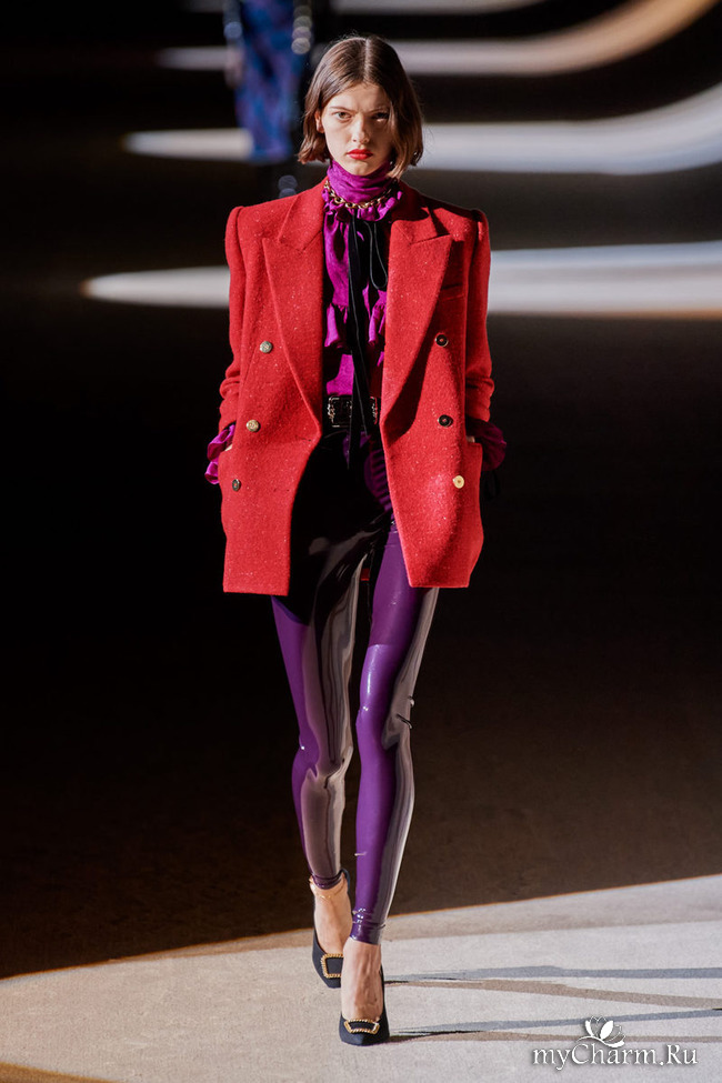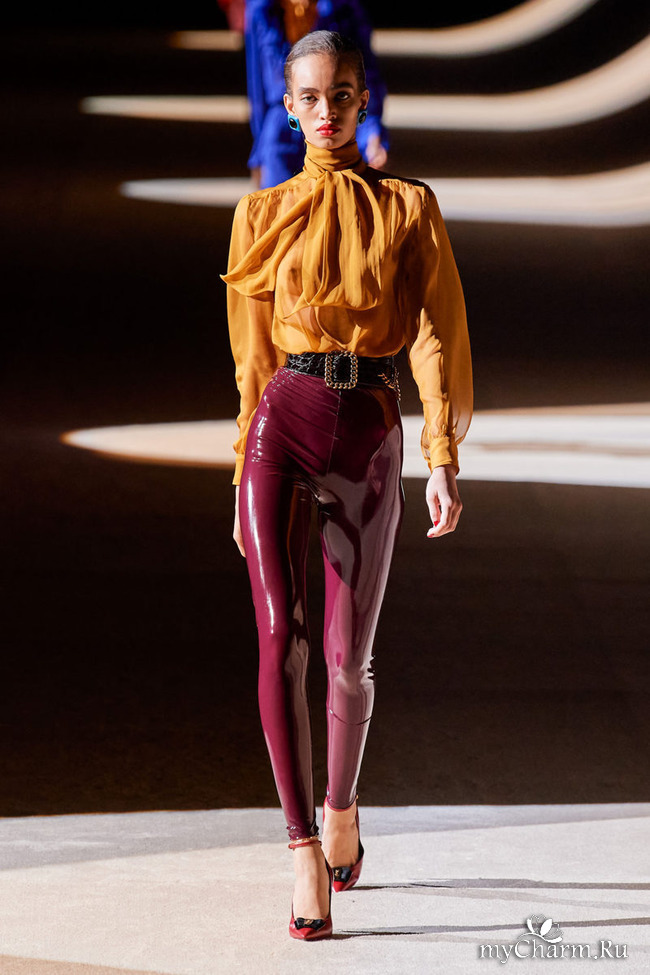 Но сейчас все в восторге от этой коллекции. Лосины из латекса дизайнер сочетает со стильными пиджаками из качественных и ярких материалов. Предлагаю и Вам посмотреть на эту красоту: