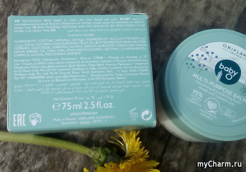 Серия Baby O изготовлена для детей, но ей с успехом могут пользоваться и мамочки. Детям можно смазывать кожу бальзамом с самого рождения. В составе 95% ингредиентов натурального происхождения.