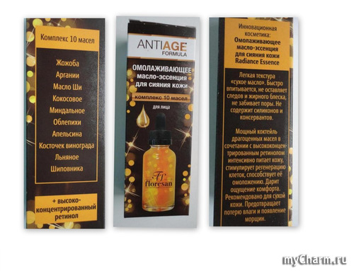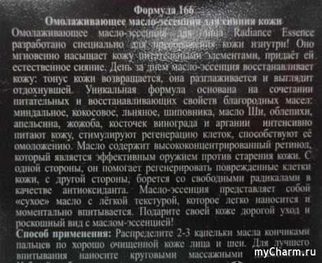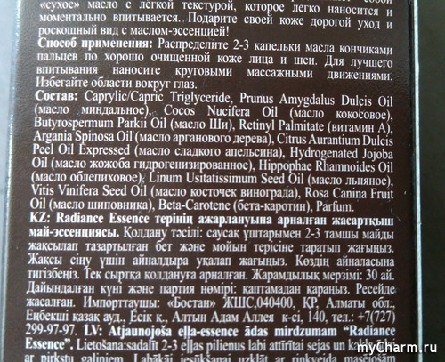 На боковой стороне коробки полный перечень масел, входящих в состав, он впечатляет, кроме того в составе высококонцентрированный ретинол.