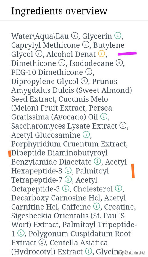 Ценны в составе пептиды Syn- ake и Матриксил. Я подчеркнула красным.