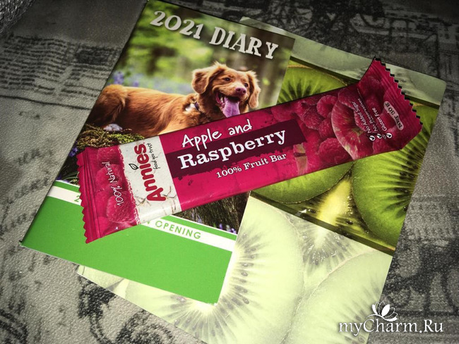 А внутри послания я нашла вкусняшку-мармеладку, открытку и ежедневник!