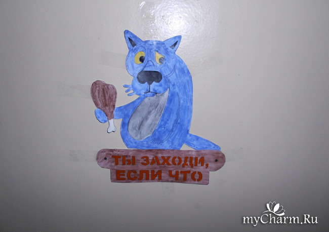 Я подумала, что будет забавно на входную дверь снаружи наклеить. Потом каждый второй, заходя в кабинет, говорил: "Я зашел (зашла), если что!"