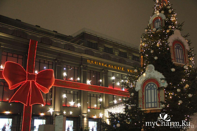 На Красной площади установили огромную елку, украшенную множеством игрушек и гирлянд. Блистает огнями не только главная елка страны, но и вся Москва.