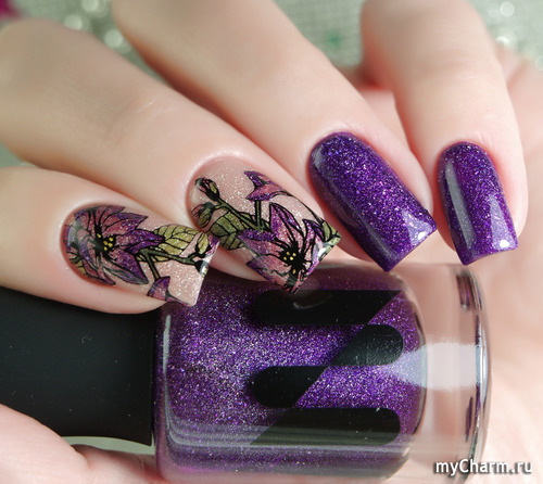 Ну, а маникюр я сделала сразу из всех 10 оттенков зимней коллекции голографии бренда MASURA. Раскрасила ими реверс-зигзаг с плитки Nicole Diary L04.