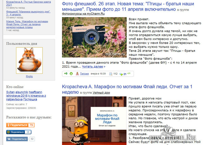 Всем доброе утро! Захожу я сейчас на сайт и вижу себя в окошке "Пользователь дня". Почти за 2 года моего здесь пребывания я впервые Пользователь дня, поэтому решила отметить сие событие постом. Пишу я мало и также мало где участвую, поэтому событие действительно неожиданное, но приятное. Спасибо! Читать полностью |