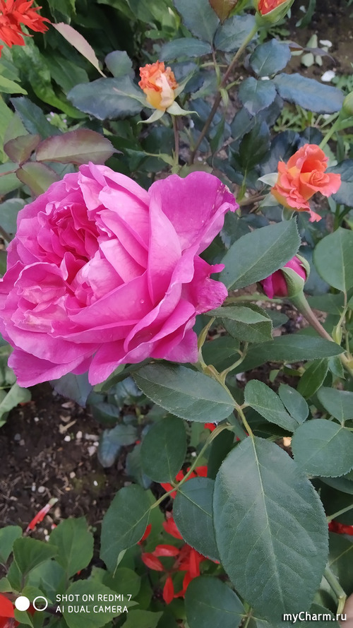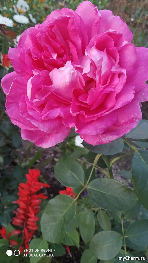 У нас в саду растёт прямостоящая душистая роза, обильно, крупно цветёт, покупала черенок и выростила, название не знаю. Ну, аромат конечно, просто потрясающий!