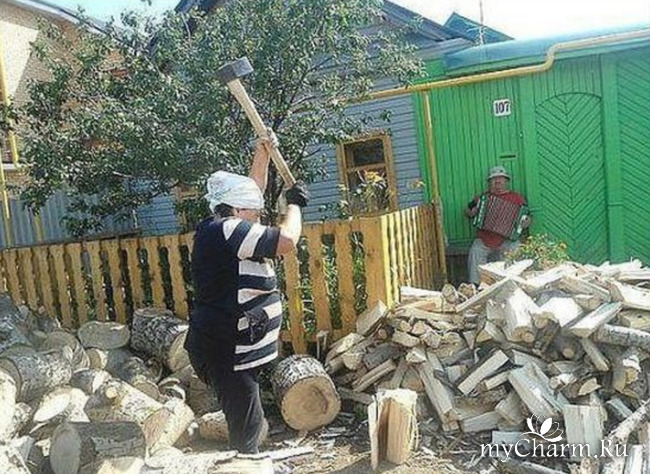А жена дров нарубила,все приготовила, убрала, постирала, скотину накормила....На интим силы остались?....