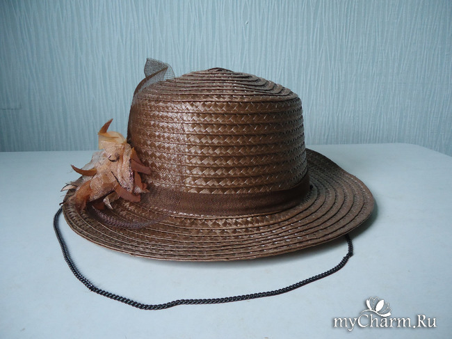 Однако, в прошлом году было такое пекло на улице, что я все-таки решилась приобрести себе шляпу для защиты головы и волос от солнца. Я долго примеряла разные шляпки, а потом понравившуюся сдвинула на затылок, так что поля обрамляли лицо. Проходящая мимо женщина неожиданно сказала: «Вам так очень идет!» И я купила себе вот эту шляпу: