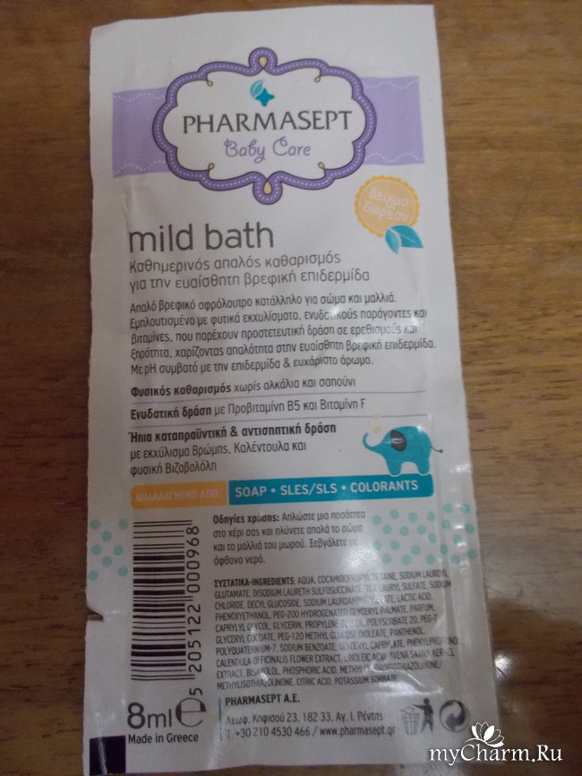 Нежный гель для ванн,детский,от греческого аптечного бренда Pharmasept,без сульфатов и мыла.