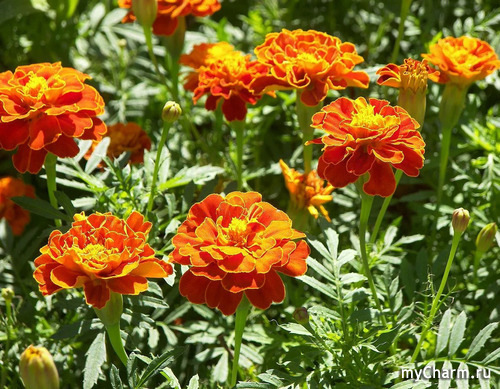 Бархатцы вот. Есть ещё шафран, но он тоже с такими же листьями:
