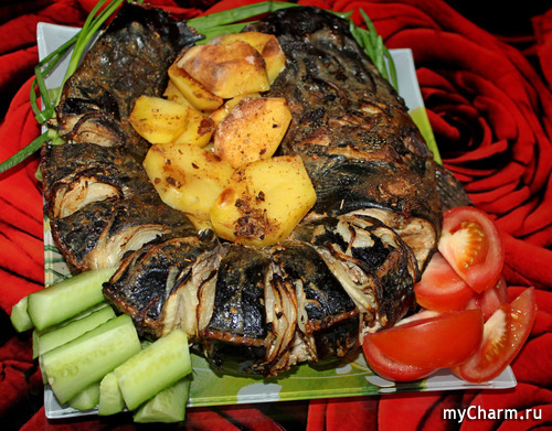 Давайте представим, что майчармельки решили встретиться. И вот мы встретились и накрываем праздничный стол, который украсят блюда победителей этого конкурса.III место заняла ваша покорная слуга Golden_Nut с огромным рыбным пирогом и вкусным кофе со сладкими вкусняшками. Обе эти фотографии набрали по 21 голосу: