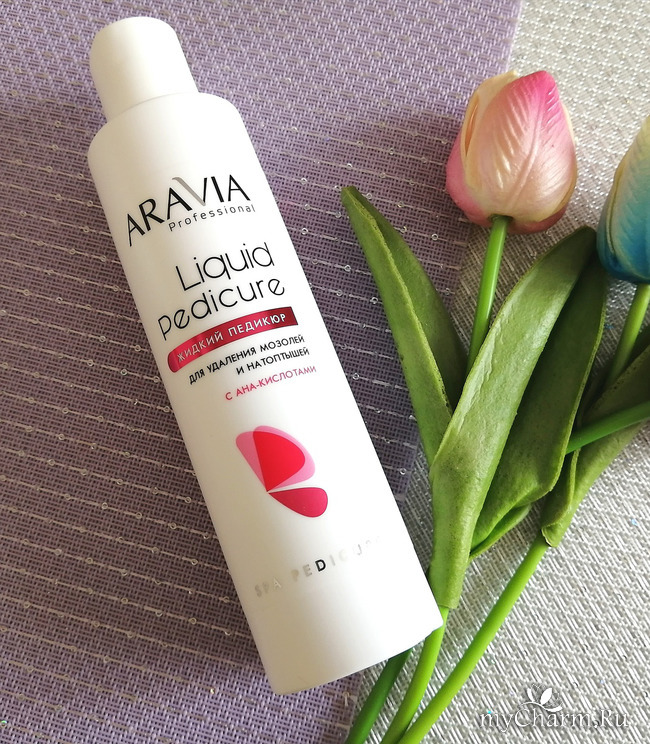 Например, есть "Жидкий педикюр для удаления мозолей и натоптышей" от известного бренда Aravia Laboratories, который я использую в последнее время.