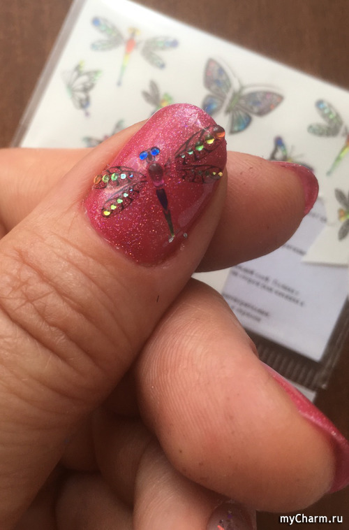 Но с одним лаком всё же мне скучно и я по-быстренькому налепила слайдеров. И нужно было чтоб кто-то стукнул меня по рукам, когда я решила это сделать на три ногтя.