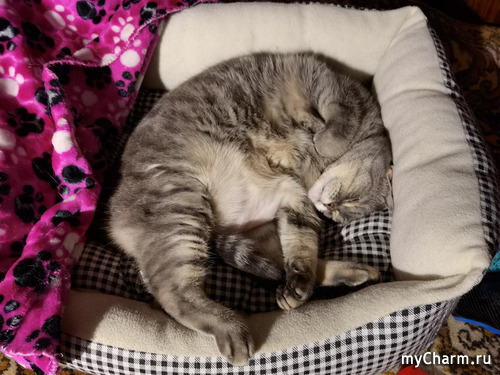А у нас новый рекорд лёжки в лежанке: сразу 5 хвостиков