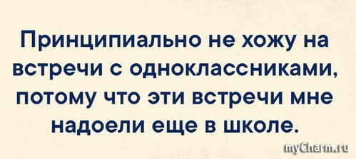 И в этой шутке есть доля правды. Я уехала из станицы где училась, и когда летом приезжаю, то встречаю тех, кто остался там жить. И с каждым разом тем для разговоров все меньше и меньше. Так что то, что я специально не езжу в станицу ради встреч, меня абсолютно не огорчает. Как-то обменивалась с подружками школьными телефонами, поначалу общение было оживленное, потом вовсе сошло на нет. Потому что жизнь другая, далекая друг от друга и интересы теперь у всех другие. Но у кого то получается пронести школьную дружбу через годы, уважаю, но у меня не так, и это тоже нормально