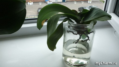 Попробовала оставить орхидею без грунта. Кончик корня был в воде. Но корешки стали гнить, новые не появились.