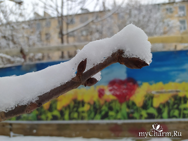 У нас тоже снегопадыыы, все завалено.. правда цветалечков пока нету