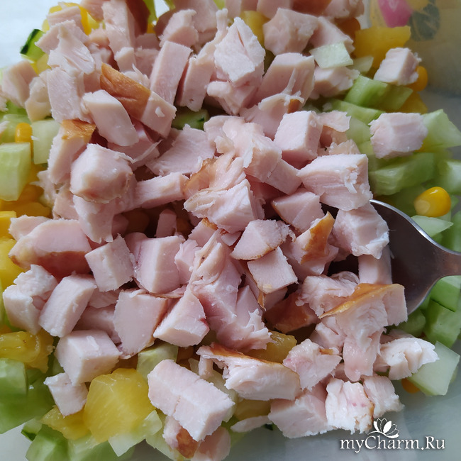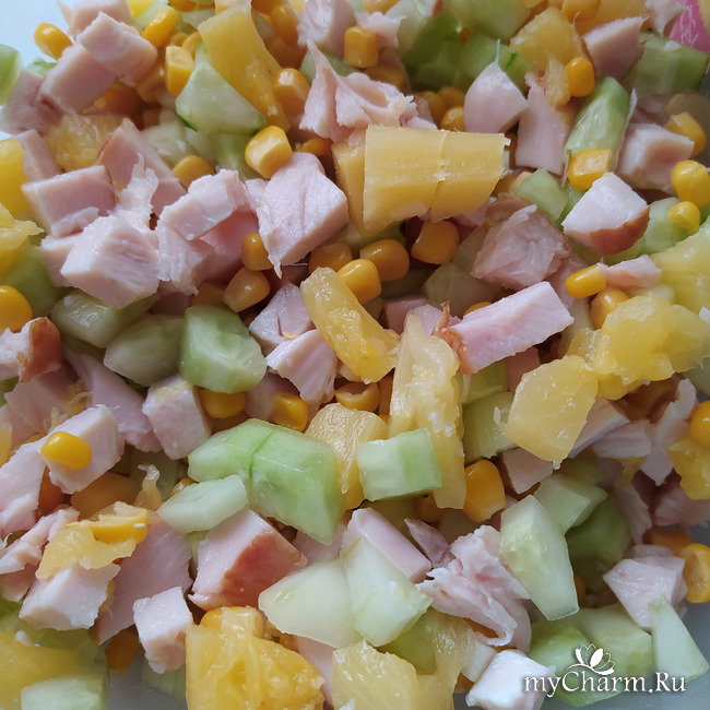 Приготовила новый салатик. Рекомендую. Ингредиенты: Окорочок куриный (копчёный) — 350 г Кукуруза — 180 г Ананас — 200 г Огурец (180 грамм) — 1 шт. Сметана — 2-3 ст. л. Горчица (зернистая) — 1 ст. л. Соль (по вкусу) Перец черный (по вкусу) В салатницу высыпаем кукурузу. Добавляем порезанный кусочками ананас. Режем огурчик... Читать полностью |