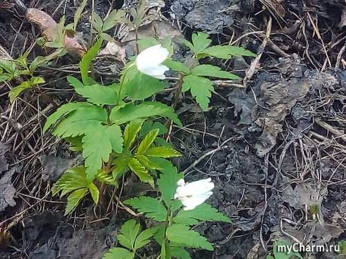 А это - моя радость. Ветреница дубравная, у нас больше известная как подснежник. Лет 10 пыталась её вырастить - всё было бесполезно, ни на одном участке не принялась. В этом году выросла сама по себе в месте, где её вообще быть не должно.
