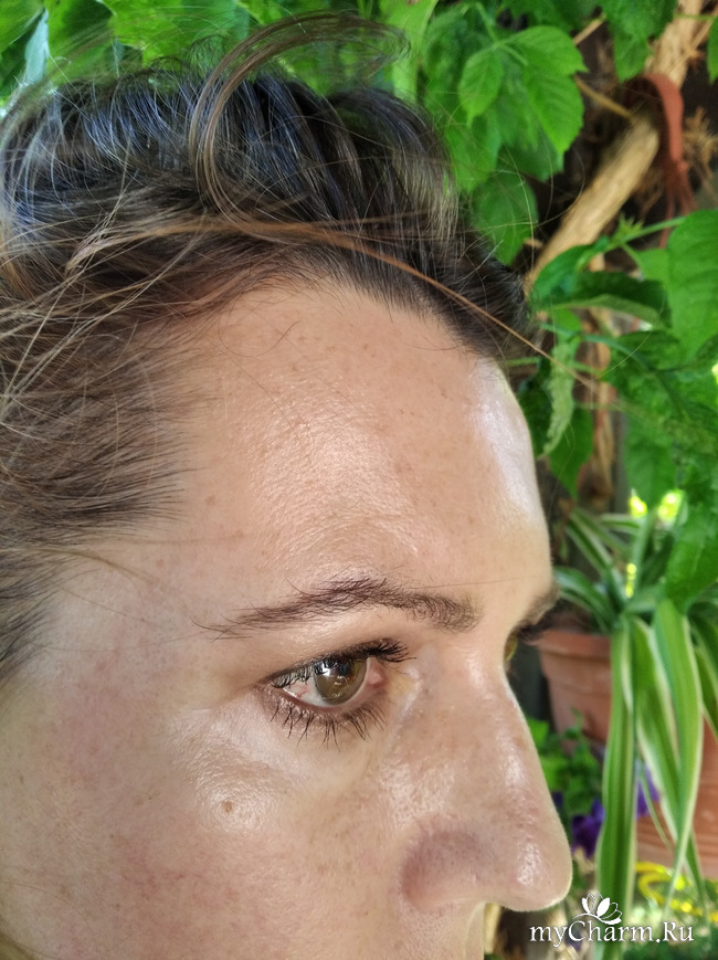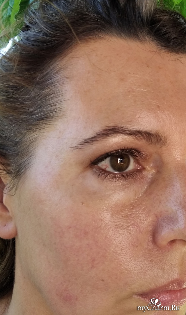 Из плюсов--- отдушку я практически не ощущаю. Тон кожи становится ровнее, но она " голая", несовершенства всё же видны. Нет жирного блеска, есть чуть влажный, здоровый финиш.