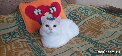 А маленький беленький "зайчик" очень хорош на фоне оранжевой подушки.