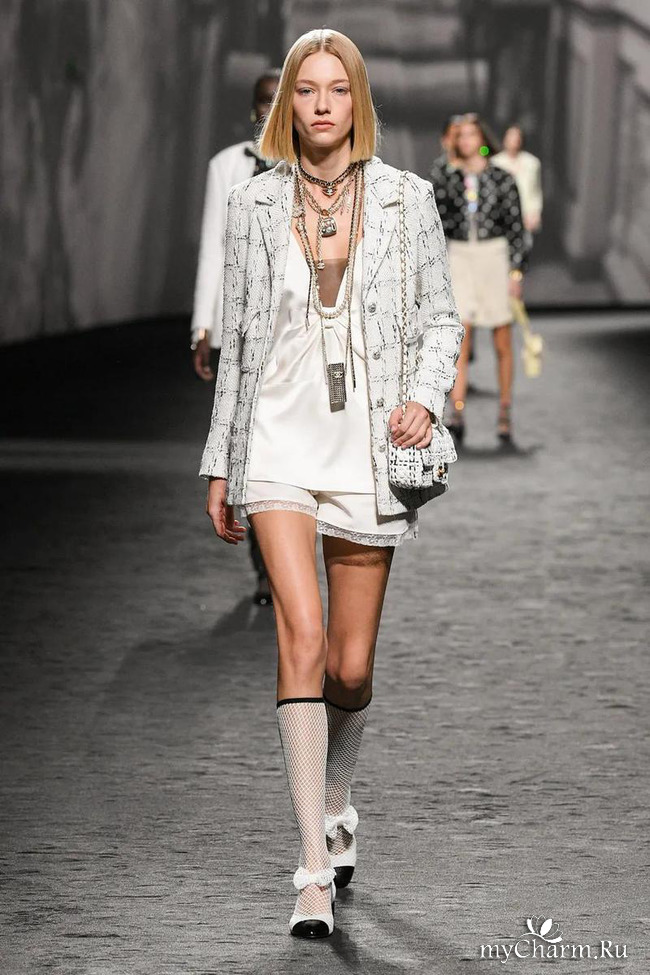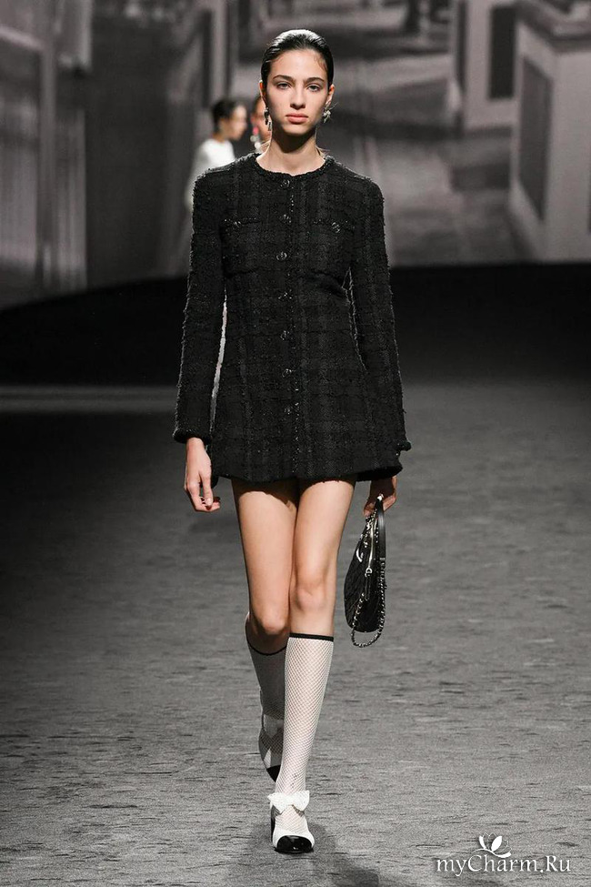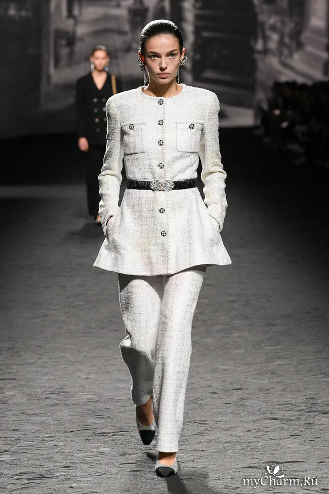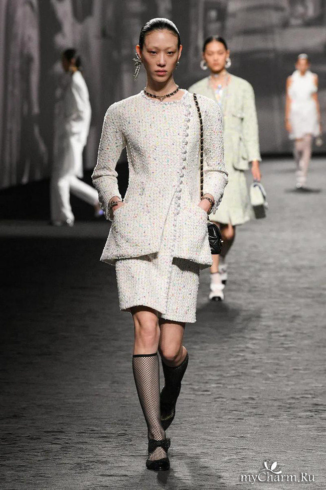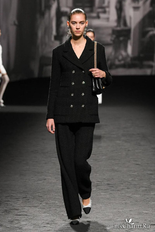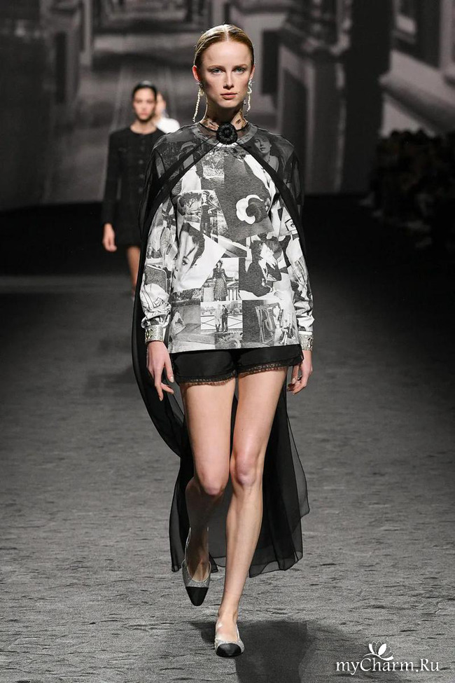 Несколько часов назад в Париже состоялось одно из важнейших событий сезона — показ новой весенне-летней коллекции Chanel, вдохновленной эпохой черно-белого кино. На этот раз за основу креативный директор бренда Виржини Виар взяла фильм «В прошлом году в Мариенбаде», снятый в 1961 году Аленом Рене. Главным референсом для дизайнера стали образы главной героини, которая появлялась в кадре в вечерних платьях, усыпанных пайетками, роскошных накидках с крупными перьями и золотистых комбинациях. Все это Виар пропустила через призму современности, создав идеальный гардероб парижанки.