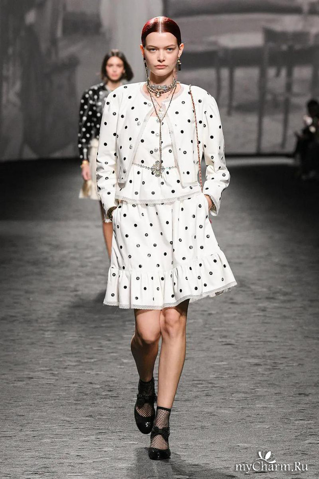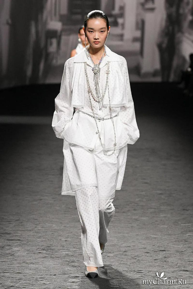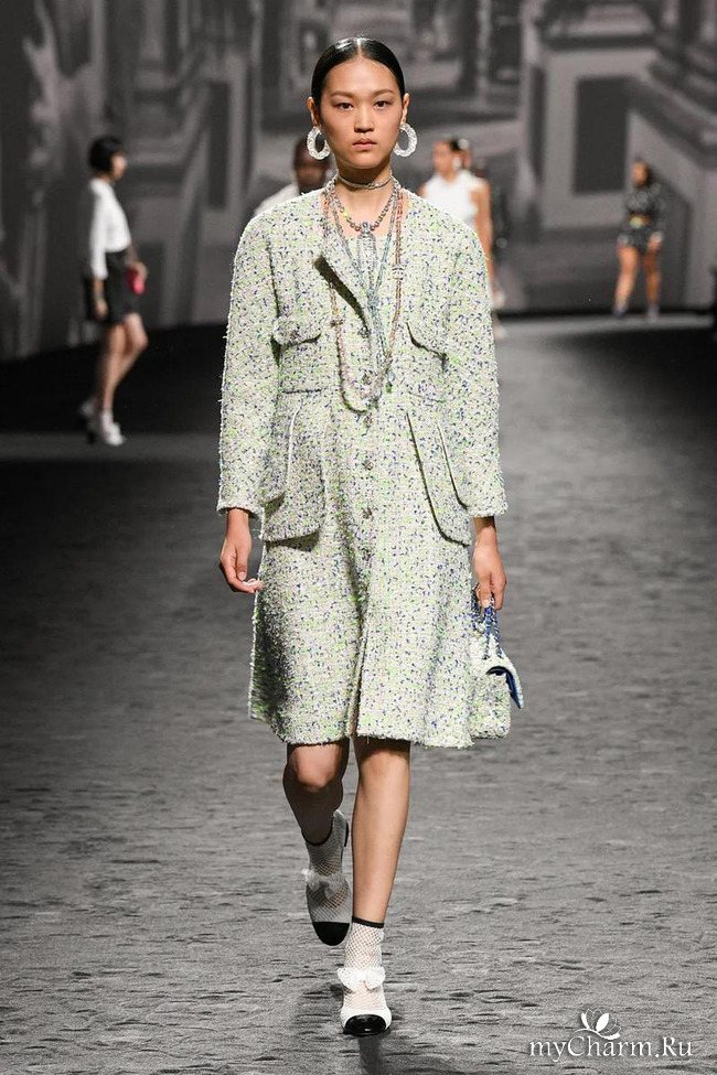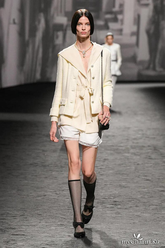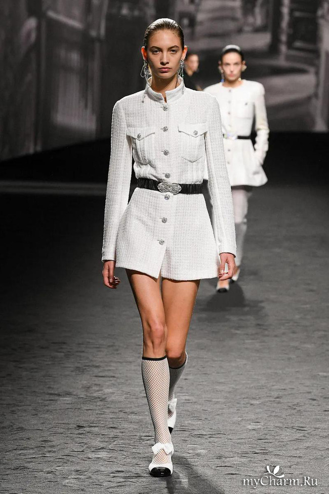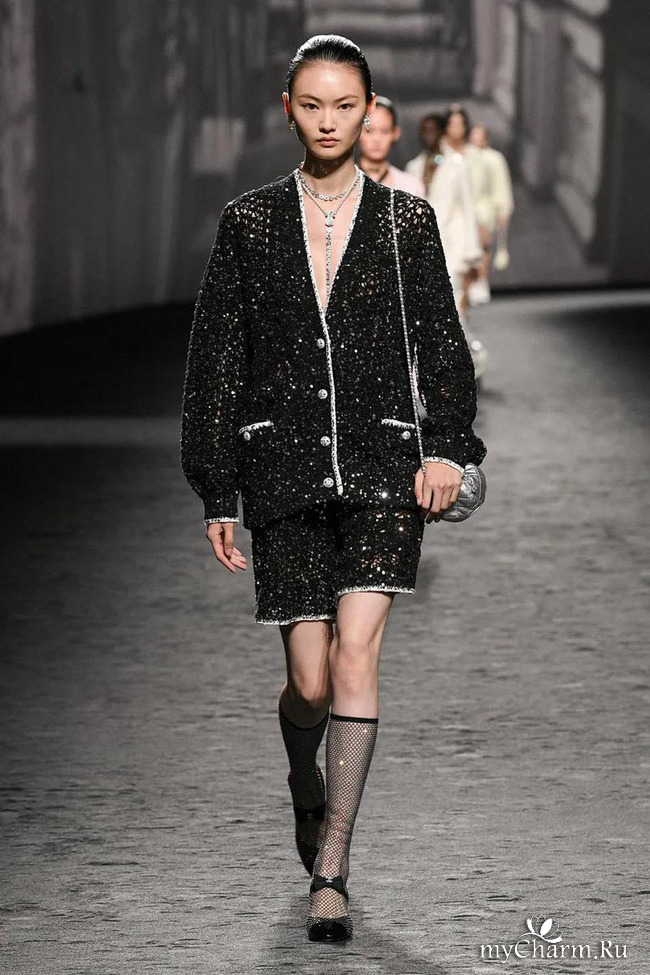 Несколько часов назад в Париже состоялось одно из важнейших событий сезона — показ новой весенне-летней коллекции Chanel, вдохновленной эпохой черно-белого кино. На этот раз за основу креативный директор бренда Виржини Виар взяла фильм «В прошлом году в Мариенбаде», снятый в 1961 году Аленом Рене. Главным референсом для дизайнера стали образы главной героини, которая появлялась в кадре в вечерних платьях, усыпанных пайетками, роскошных накидках с крупными перьями и золотистых комбинациях. Все это Виар пропустила через призму современности, создав идеальный гардероб парижанки.