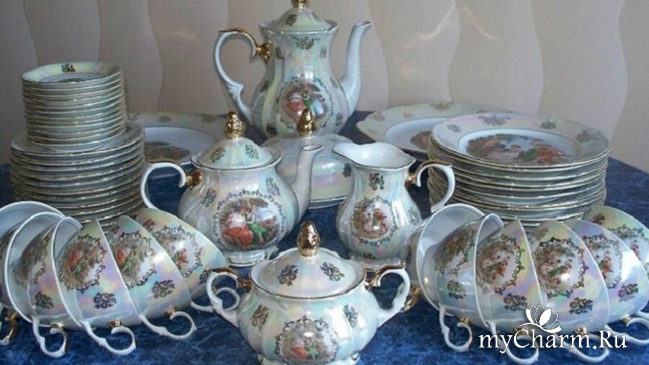 У нас никогда не было сервиза, может только наборы тарелок в одном цвете или чайные чашки. Не тот уровень! Я так вообще интересуюсь сервизами только на картинках или в магазинах, как картинами. Очень красиво, да! Но дома-то они мне зачем?