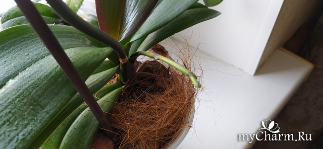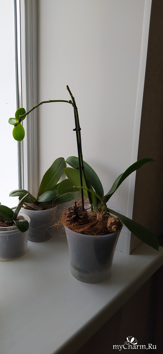 А пока на новом месте растит корешки и цветоносик.