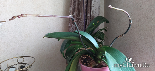 Еще два цветоноса на второй орхидее.