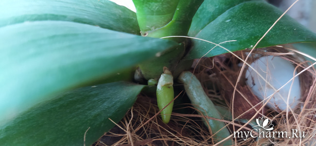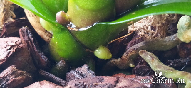 А вот у этой орхидейки не пойму, что начало расти и остановилось.