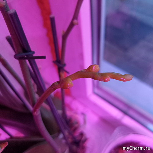 И еще один молоденький цветоносик к свету тянется.