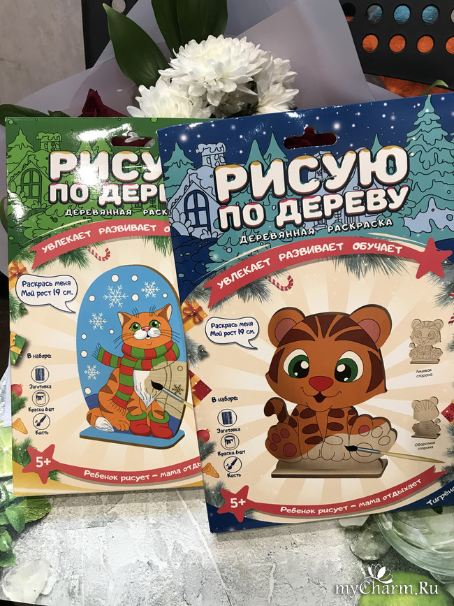 Серии покупок детские развивашки, много было с новогодней тематикой, но я выбрала исключительно кошачью тематику, им нравятся только кошки) И оказалась права, посидела часок спокойно, пока они смешивали краски и рисовали на дощечках.