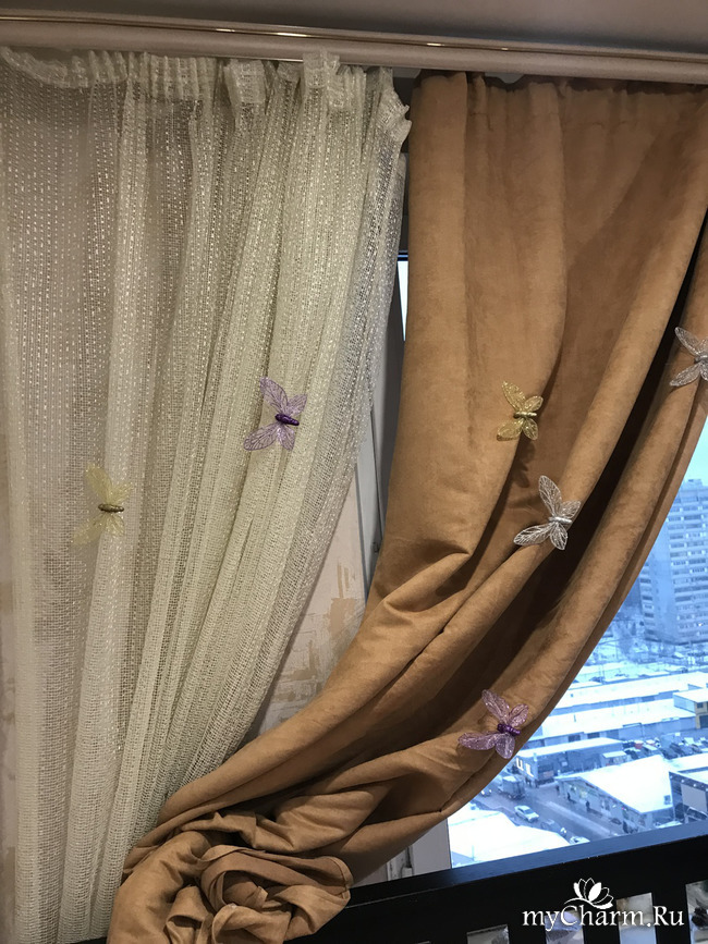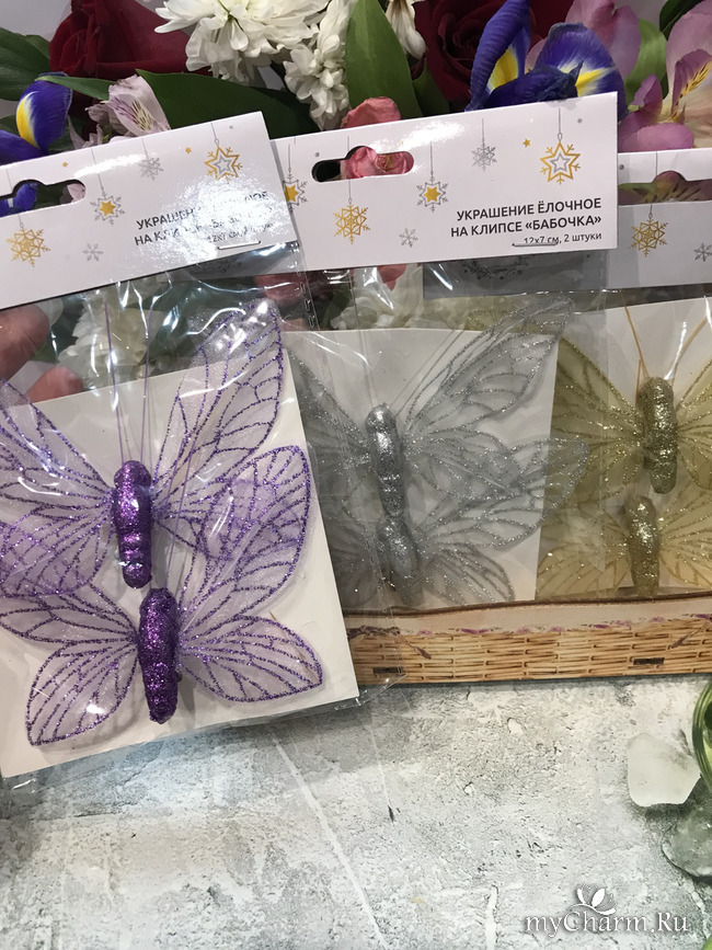 Купила три набора бабочек, они на клипсе, должны идти на ёлку, я же украсила шторы, фотографии ниже будут, вышло очень классно!))