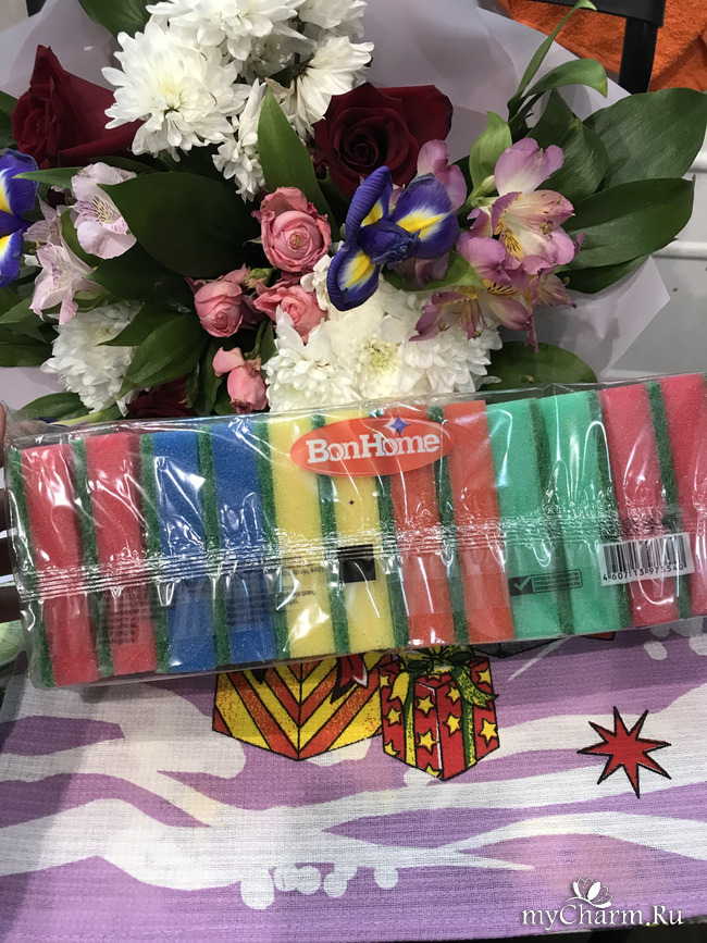 Ниже полотенчик, губки, пакеты фотографировать я не стала, взяла и для заморозки и иные.