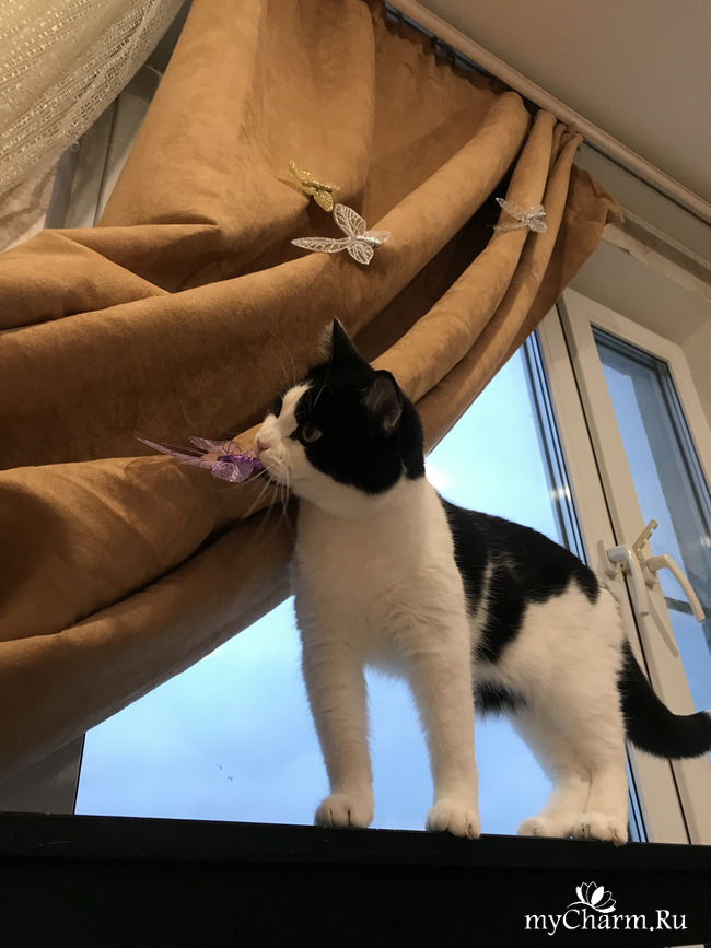 А тут бабочки отлично разместились! Очень повышают настроение, позже будет гирлянда, а пока пусть они радует глаз, и не только мне и детям, но и котик мимо пройти не смог!!!)))