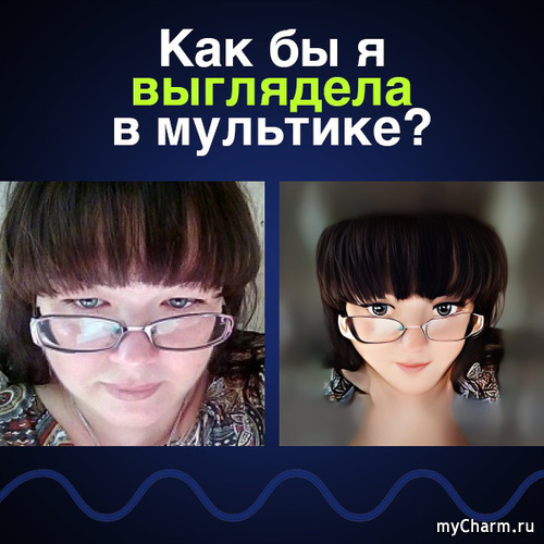 Как бы я выглядела в мультике - единственный вариант, который мне понравился! Хотя глазки косенькие и носик - не мой, но - симпатичное создание получилось!